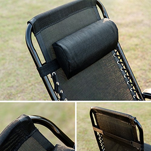 Lightweight powder coated steel frame, twist-knobs lock mechanism and an adjustable headrest pillow. Quality crafted oxford fabric for easy clean up