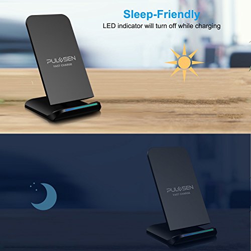 【UNIVERSAL COMPATIBILITY】: PULESEN Fast Wireless Charging Stand has two charging modes for all Qi-enabled devices. Fast charge modes are ONLY available for Samsung Galaxy Note 8, S8, S8+/S8 Plus, Note 5, Galaxy S6 Edge Plus, Galaxy S7, and Galaxy S7 Edge. And will charge other Qi-enabled devices at a standard speed such as iPhone X, iPhone 8, iPhone 8 Plus, Samsung Galaxy S9, S9 Plus / S9+. Some devices require the addition of a QI charging receiver: Samsung Note 4, S5, S4, iPhone, LG G3, G4 and other no Qi compatible phones