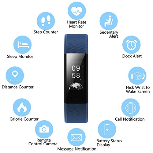 ¡¾Heart Rate Monitor&Multi Sport Mode¡¿The Smart Wristband test heart rate,click the Home Key to see your data,the data in APP show your exercise intensity.You can arrange your exercise more legitimately.Record ten kinds of sports mode,movements can be more arbitrary.